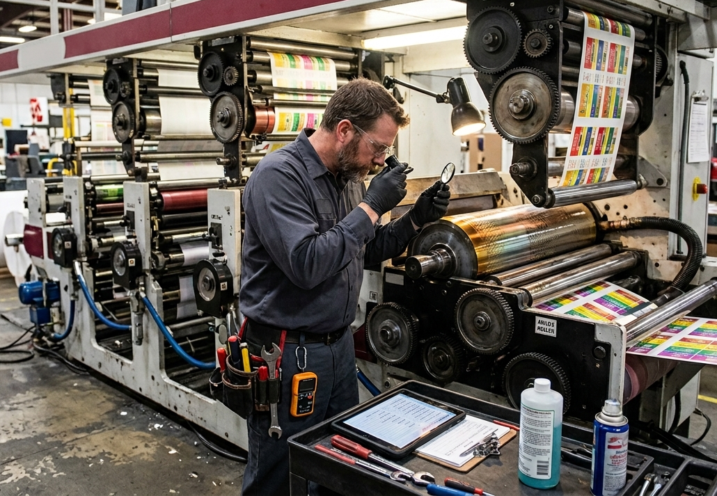 Most press downtime is preventable. Bearings don't fail overnight. Anilox cells don't degrade in a single shift. Registration drift doesn't happen without warning.